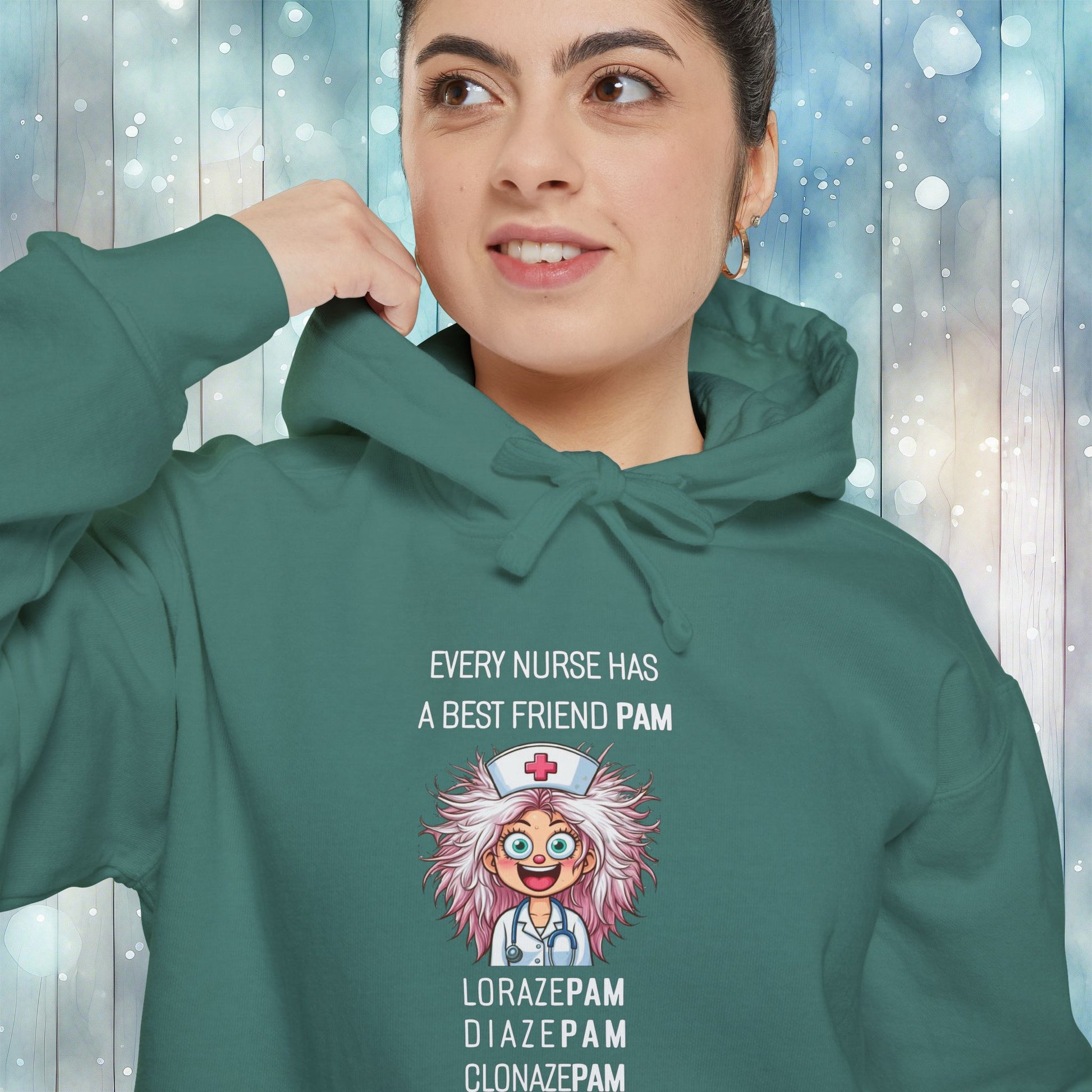 Elevate your nursing wardrobe with the Comfort Colors Hoodie - Nurse Has A Friend Named PAM. This cozy, stylish sweatshirt is a must-have for any healthcare professional.